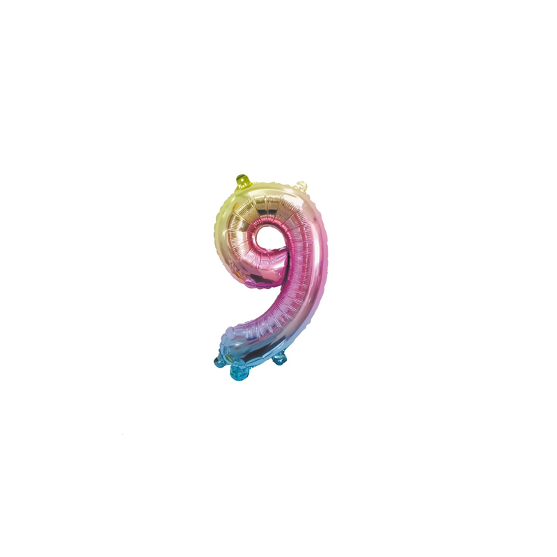 BALLON MYLARD - Chiffre 9 multicolore pastel (36cm)