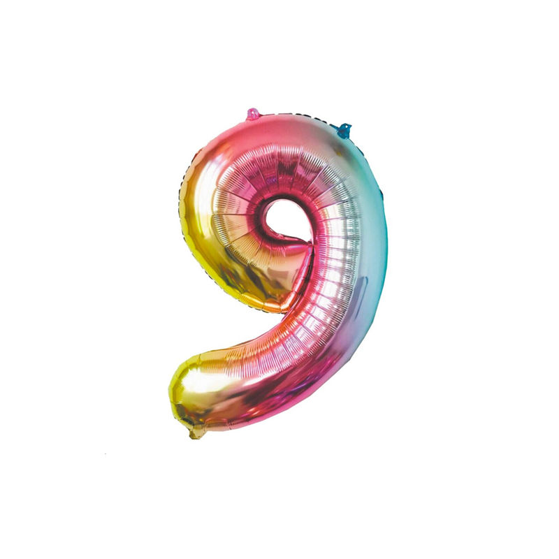Célébrez un 9ème anniversaire ou marquez les quatre-vingt-dix ans avec ce grand ballon chiffre 9 Multicolore !