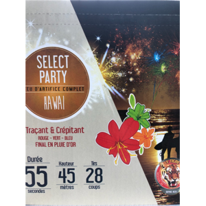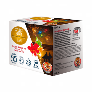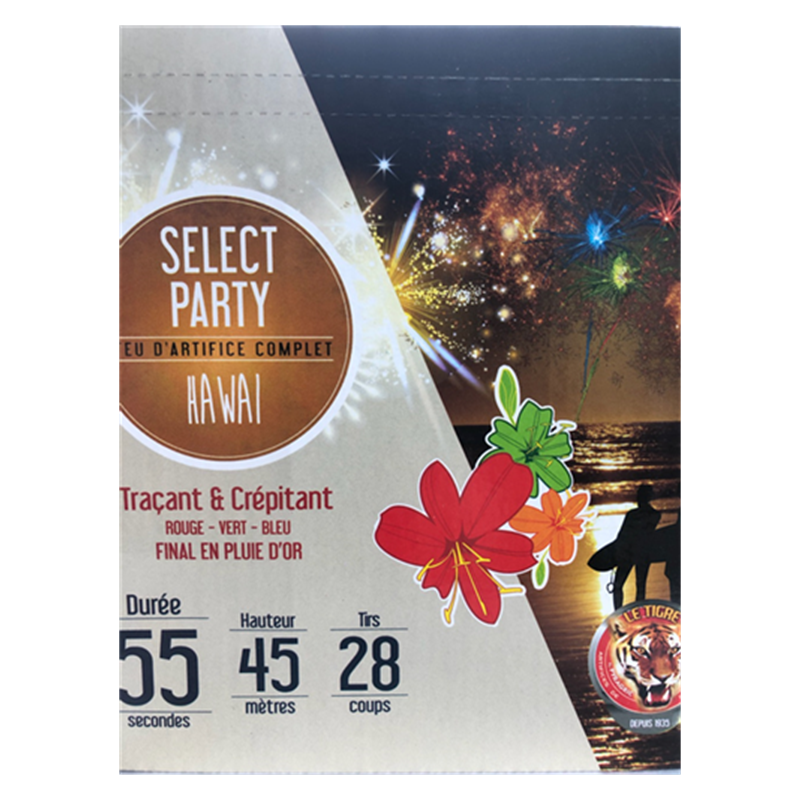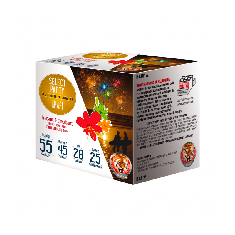 ARTIFICE - COMPACT HAWAI CAT2 - Durée 55 secondes - Hauteur 45 mètres - Distance de sécurité 25 mètres Article ni repris, ni échangé.