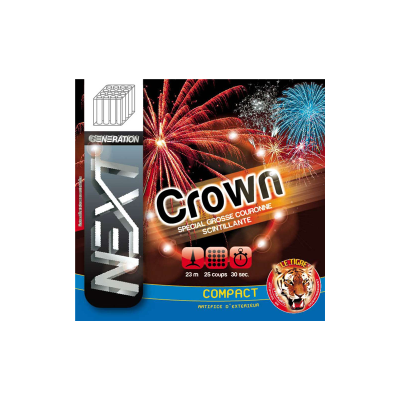 ARTIFICE - CROWN CAT2 - Durée 30 secondes - Hauteur 23 mètres - Distance de sécurité 25 mètres Article ni repris, ni échangé.