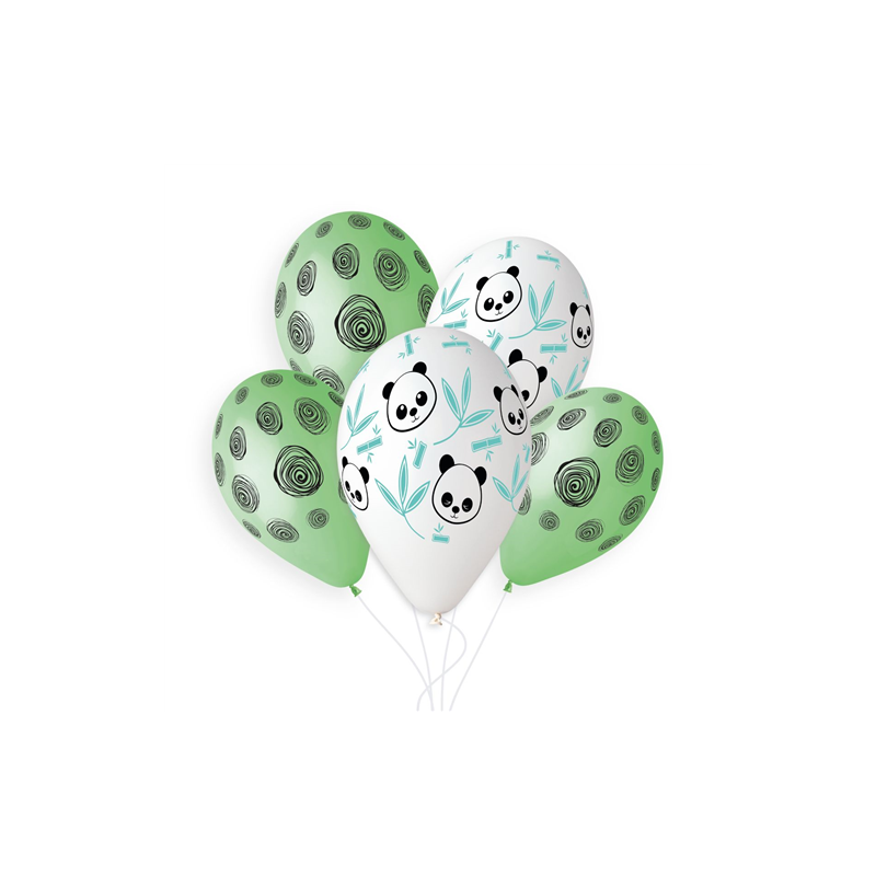 Plongez dans un univers de douceur ! Ce lot de 5 ballons "Panda et Spirales", sélectionné par Apostrophe déco, est l'accessoire idéal pour une décoration d'anniversaire sur le thème des animaux de la forêt ou de la jungle. Avec leurs motifs adorables et leur diamètre de 33cm, ils raviront les enfants et apporteront une touche de fantaisie à votre fête.