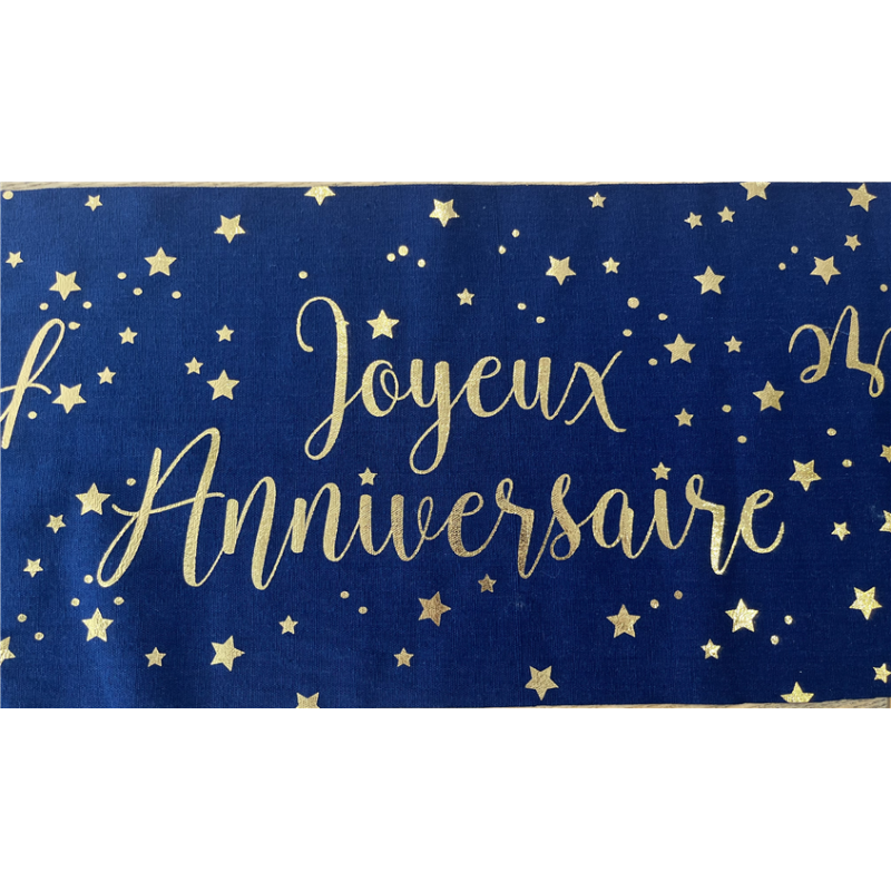 CHEMIN DE TABLE - Joyeux anniversaire bleu marine et or (en lin 30cm x 3m)