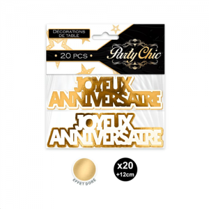 CONFETTIS DE TABLE - Joyeux anniversaire or/doré et blanc x 20 (en carton 12cm)