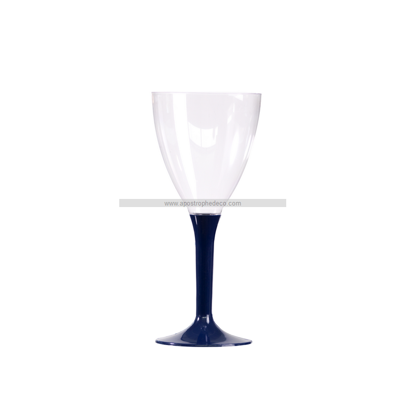 VERRE A VIN - Pied bleu marine x 10 RÉUTILISABLE (en plastique 20cl)