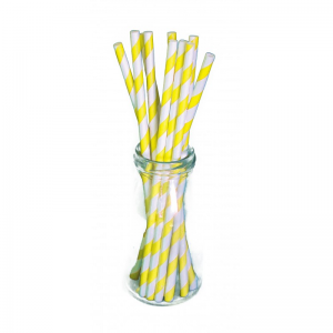 PAILLE - Jaune à rayure blanc x 10 (en carton 19cm)
