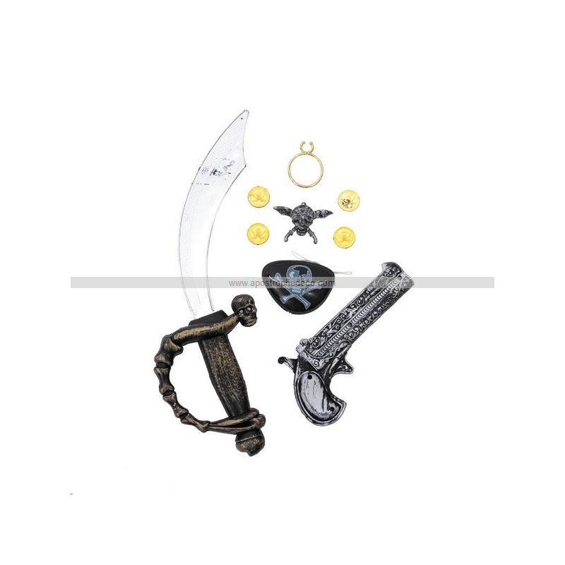SET PIRATE - Sabre, pistolet, cache-oeil, boucle de nez, pièce en or