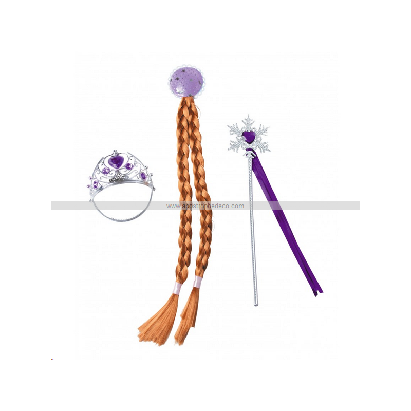 SET - Princesse violette ENFANT (tiare, tresse et baguette)