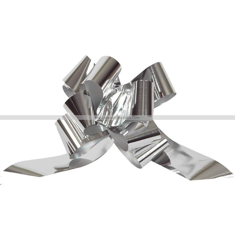 NOEUD - Argent métallisé x 5 ( Idéal pour déco voiture, cadeau...en polypropylène 50mm)