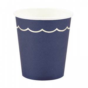 GOBELET/VERRE - Festonné bleu marine/foncé bord doré x 8 (en carton 20cl)