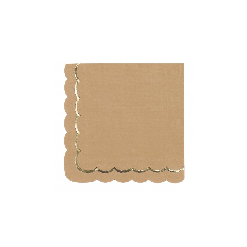 SERVIETTE - Festonnée kraft bord doré x 16 (33cm x 33cm)