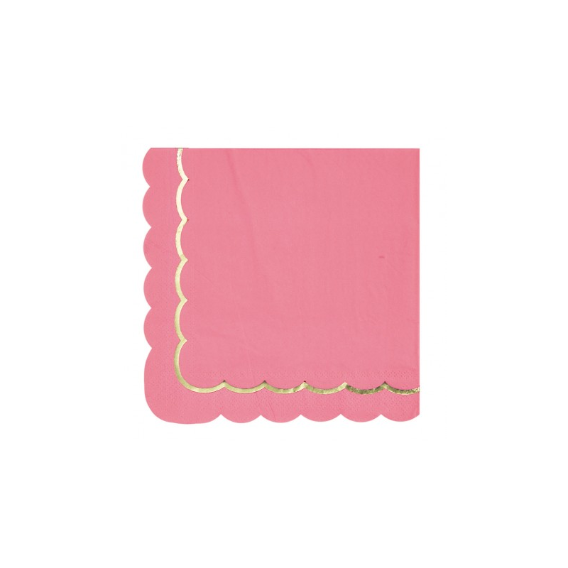 SERVIETTE - Festonnée rose fushia/néon bord doré x 16 (33cm x 33cm)