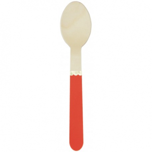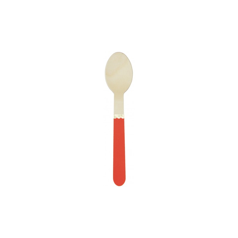 PETITE CUILLERE - Avec manche rouge avec feston or/doré/gold x 8 (en bois 15cm)