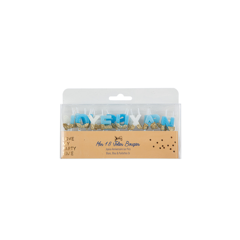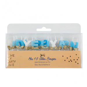 BOUGIE - Joyeux anniversaire dégradé de bleu et or/doré (sur pic)