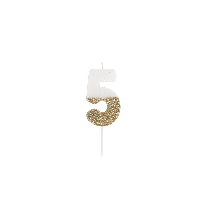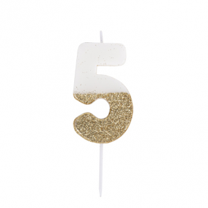 BOUGIE - Chiffre 5 dégradé de blanc et or/doré (7cm)