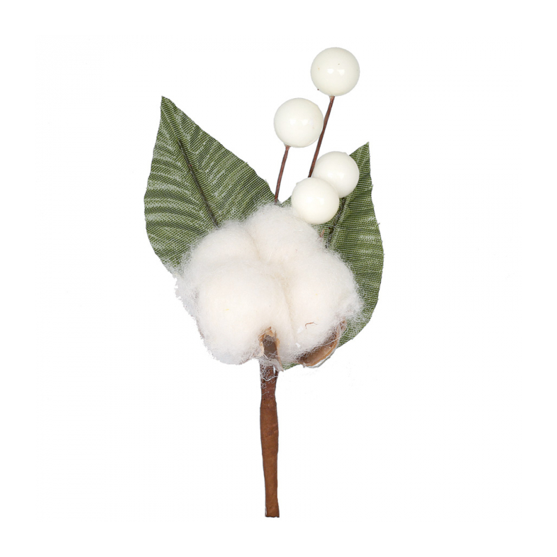 PIQUET - Fleur de coton et baies blanches (12cm)