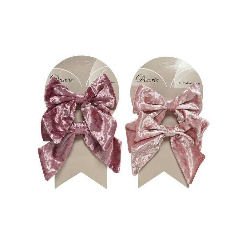 NOEUD - Velours rose pastel/vieux rose x 2 (15cm)