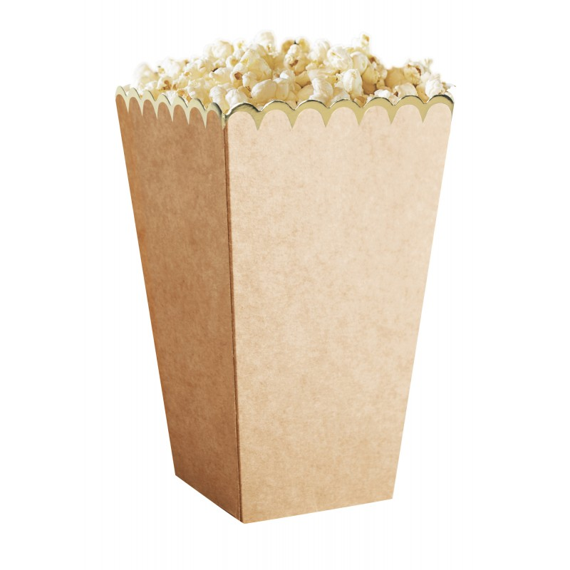 POT A POPCORN/BONBON - Kraft et or x 8 (en carton 12cm x 7cm)