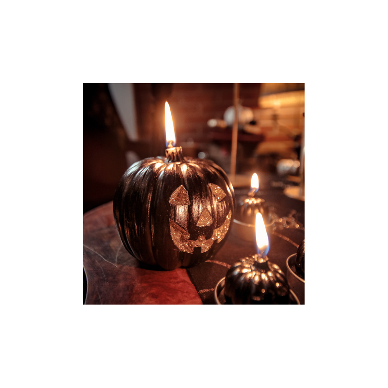 BOUGIE - Citrouille halloween noire et paillette (9.5cm)
