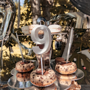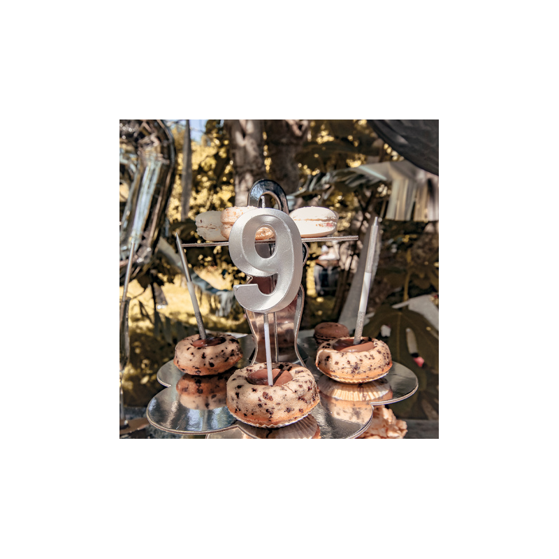 BOUGIE - Chiffre 9 graphique argent sur pic (7cm)