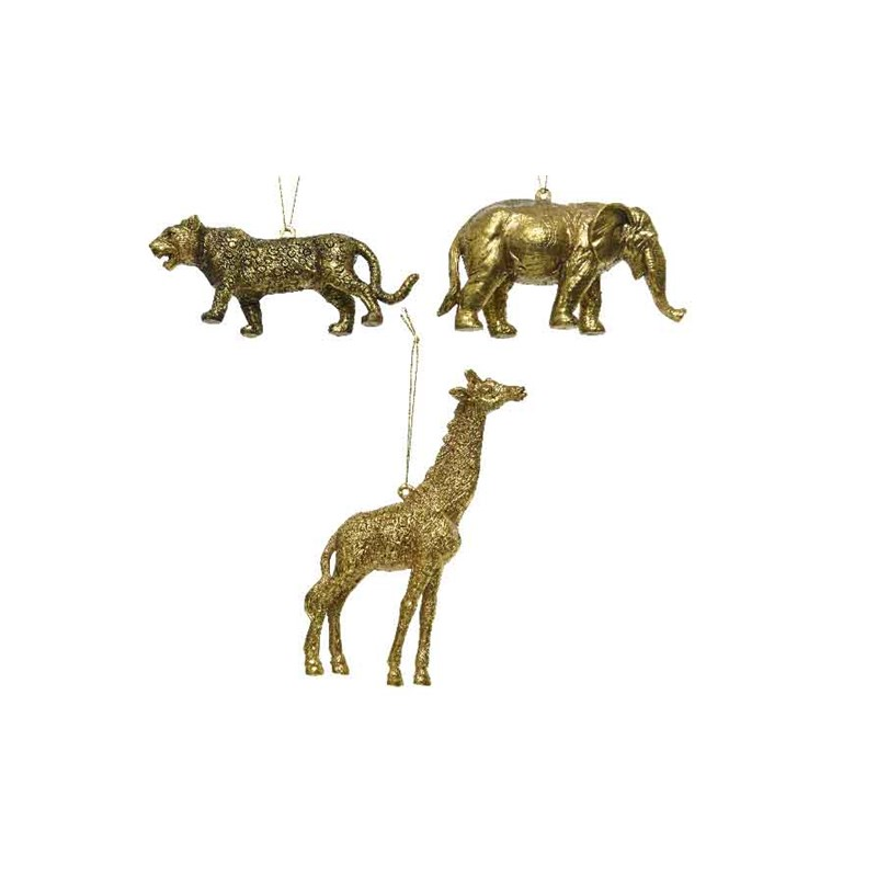 DECOR SAPIN - Animaux de la savane or/doré (au choix incassable 7cm)