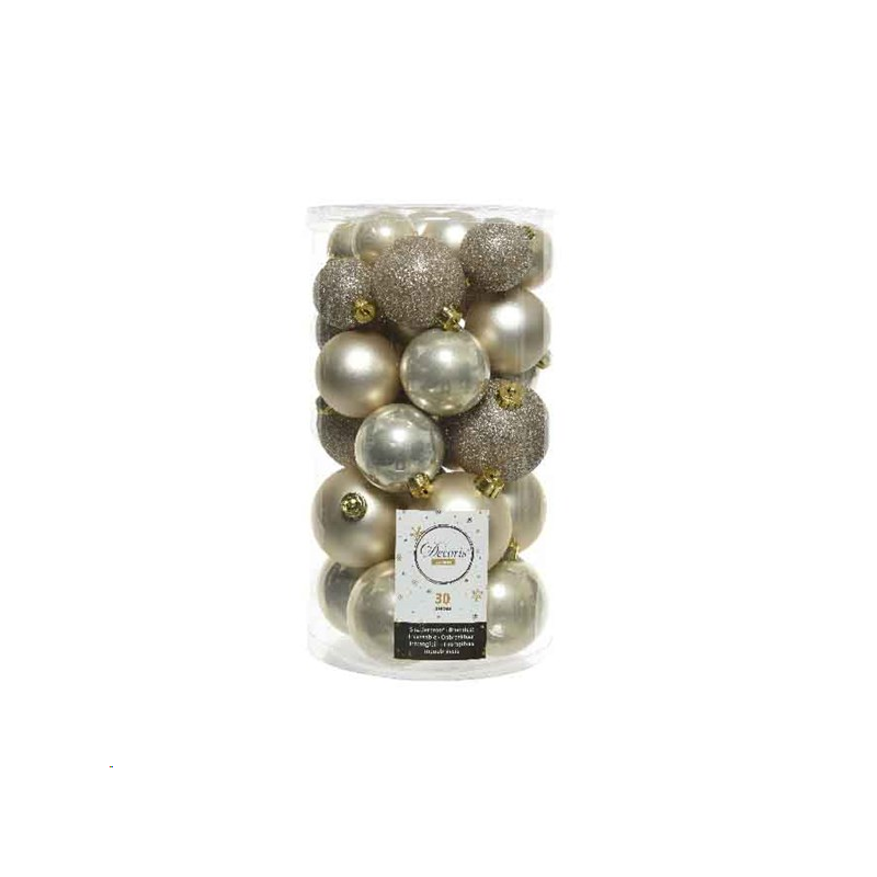 DECOR SAPIN - Boule ivoire/perle brillant/mat/pailleté x 30 (incassable 6/8cm)
