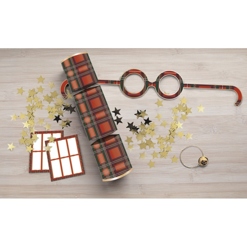 Chaque crackers contient une paire de lunette, un charms de verre, des jolies étiquettes et une pluie d'étoiles dorées