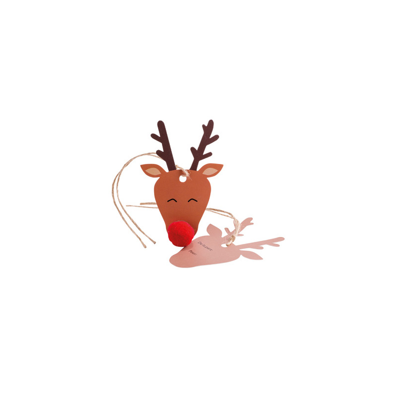 ETIQUETTE CADEAU - Rudolph avec son nez pompon rouge x 8 (10cm)