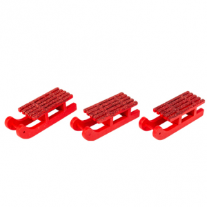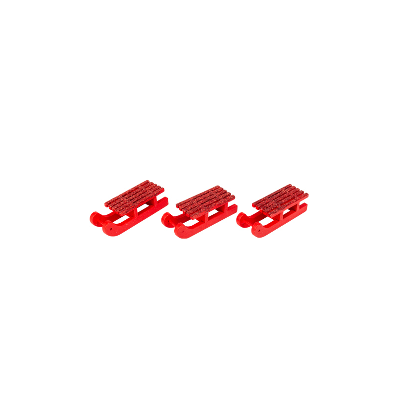 DECOR DE NOEL - Luge rouge pailletée x 3 (en bois 7,5cm x 2.5cm)