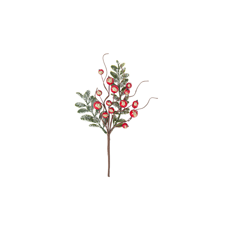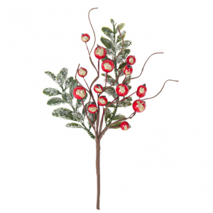BRANCHE/PIQUET - Baies rouge enneigée et pailletée (21cm)