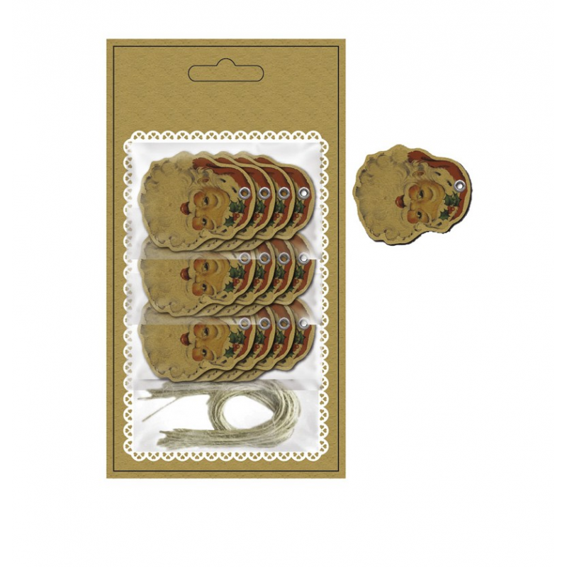 ETIQUETTE - Père Noël x 12 (avec ficelle en carton 4cm)