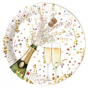 ASSIETTE - Célébrations/champagne et coupe x 8 (en carton 23cm)
