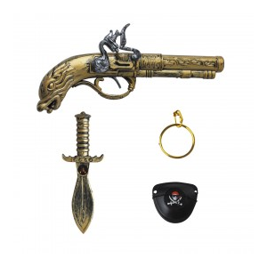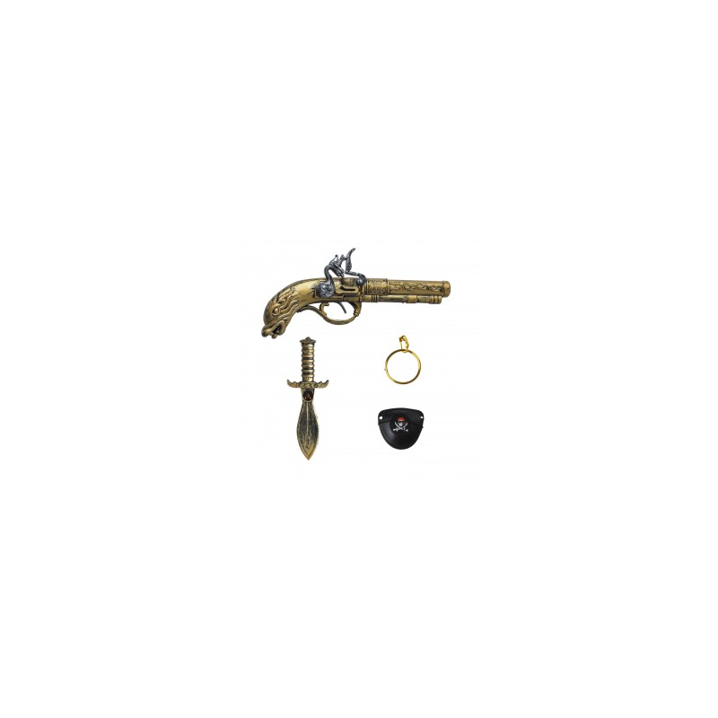 SET PIRATE - Pistolet, couteau, cache oeil, boucle (en plastique)