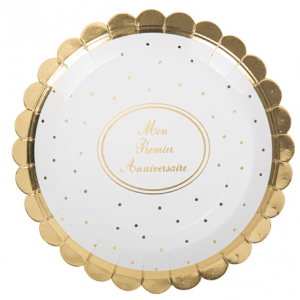 SERVIETTE - Mon 1er anniversaire blanc et or/doré (33cm x 33cm)
