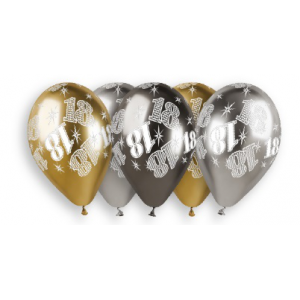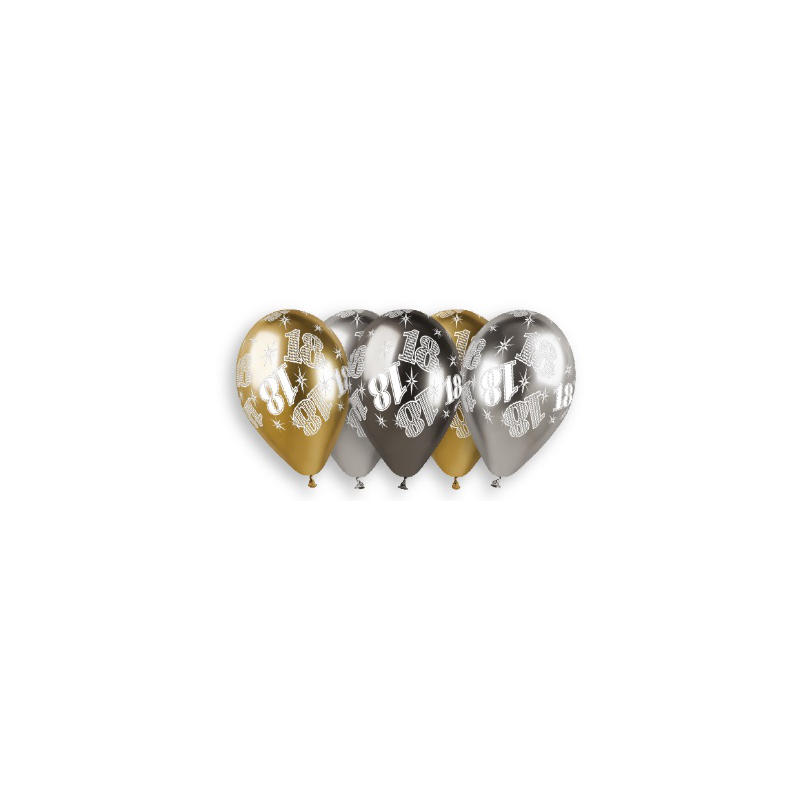 Passez le cap des 18 ans avec prestige ! Ce lot de 5 ballons "18 ans", sélectionné par Apostrophe déco, se décline dans une finition Chrome haut de gamme. Avec leurs reflets métalliques intenses en or, argent et noir, ces ballons de 30cm sont parfaits pour marquer l'entrée dans la majorité avec une décoration chic et moderne.