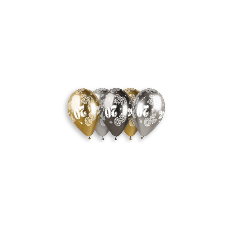 Entrez dans la vingtaine avec éclat ! Ce lot de 5 ballons "20 ans", sélectionné par Apostrophe déco, se distingue par sa finition Chrome exceptionnelle. Leurs reflets métalliques miroir en or, argent et noir apportent une touche de luxe immédiate à votre décoration d'anniversaire, pour une célébration inoubliable.