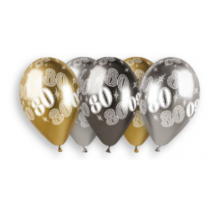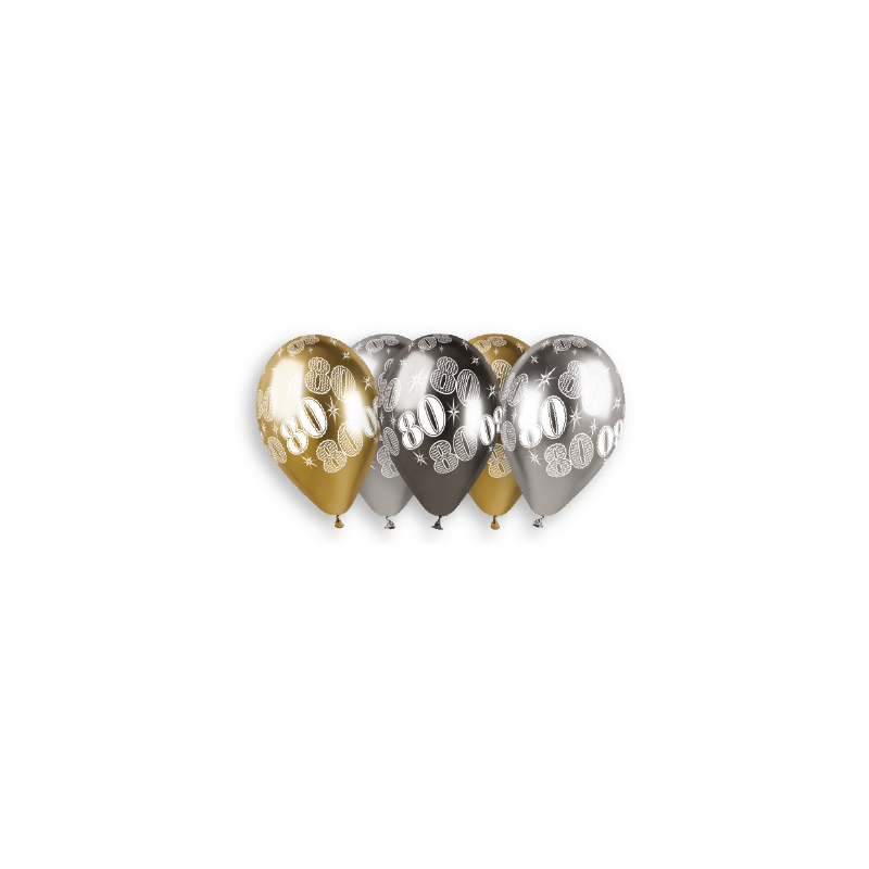 BALLON - Inscription 80 or/argent/noir chrome x 5 (en latex 30cm)