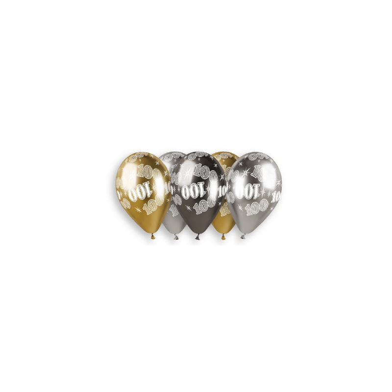 Un siècle, une vie entière à honorer avec la plus grande élégance ! Ce lot de 5 ballons "100 ans", sélectionné par Apostrophe déco, se pare de la finition Chrome haut de gamme. Leurs reflets métalliques miroir en or, argent et noir créent une atmosphère de célébration majestueuse pour cet anniversaire légendaire.