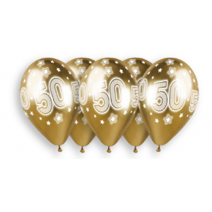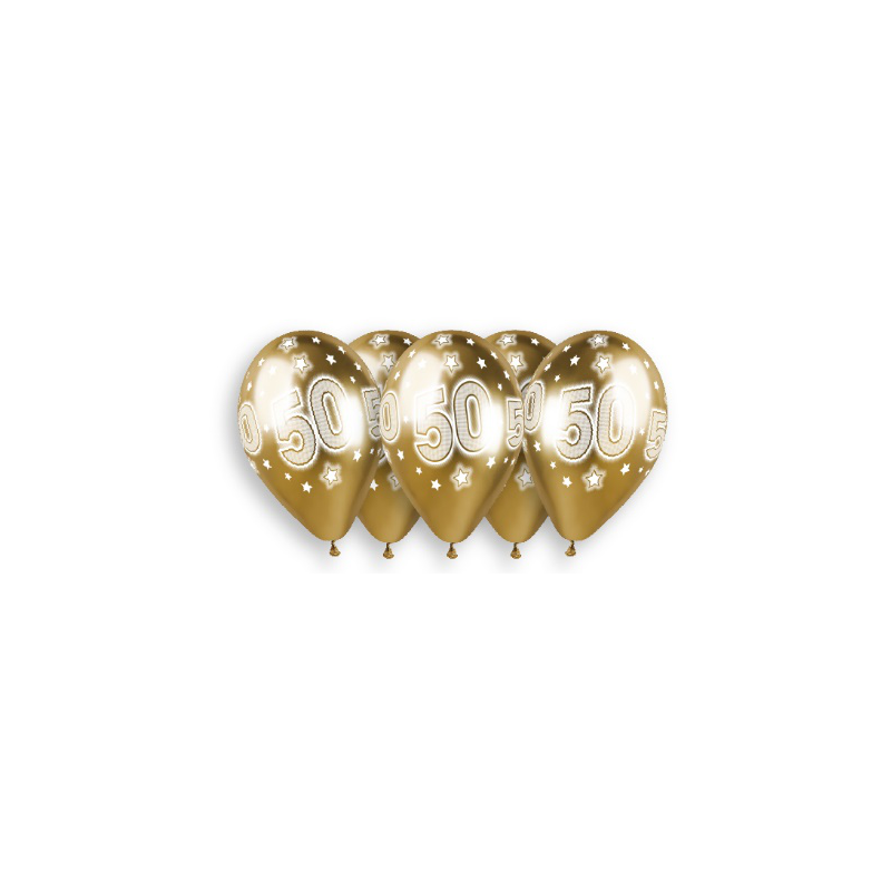 Un demi-siècle de vie ou d'amour mérite une brillance exceptionnelle ! Ce lot de 5 ballons "50 ans", sélectionné par Apostrophe déco, arbore la prestigieuse finition Chrome. Leurs reflets miroir d'un or intense créent une ambiance de fête majestueuse et haut de gamme, idéale pour honorer ce jubilé d'or.